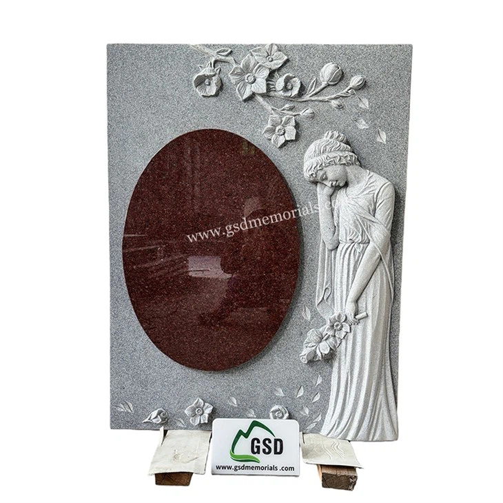 Saya dengan senang hati membagikan desain baru kami Malaikat dengan Nisan Panel Merah India yang terbuat dari granit abu-abu muda dengan panel Merah India yang dipoles. Manajer kami mendapatkan inspirasi dari lukisan cat minyak klasik dan menggambar sketsa untuk menunjukkan ide utama. Peri sedang bermeditasi dengan bunga sakura di tangannya yang menyampaikan rasa kedamaian dan ketenangan.